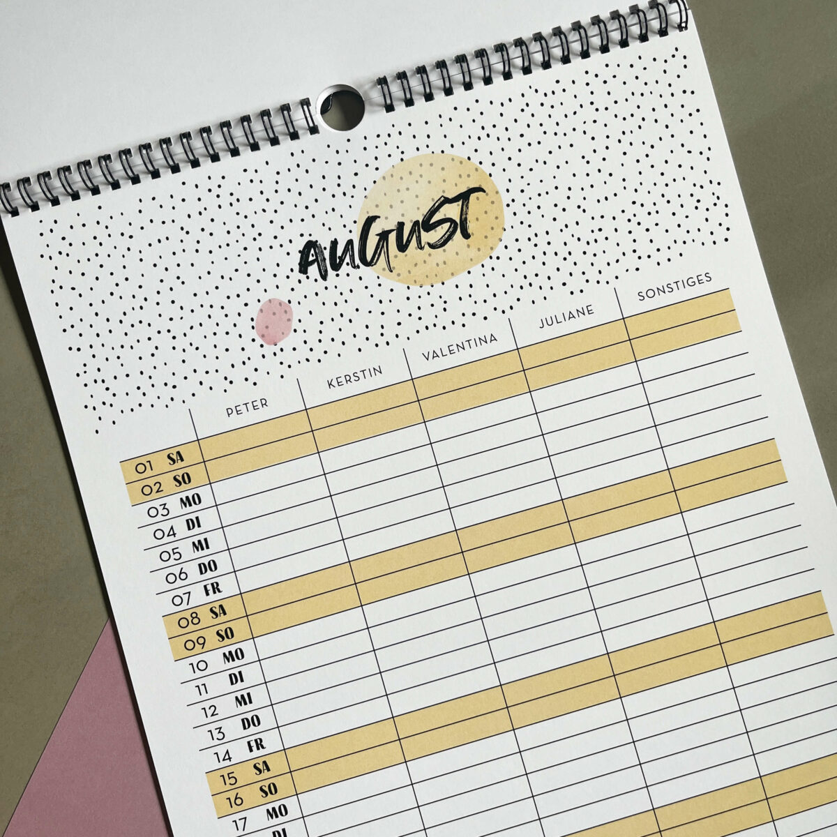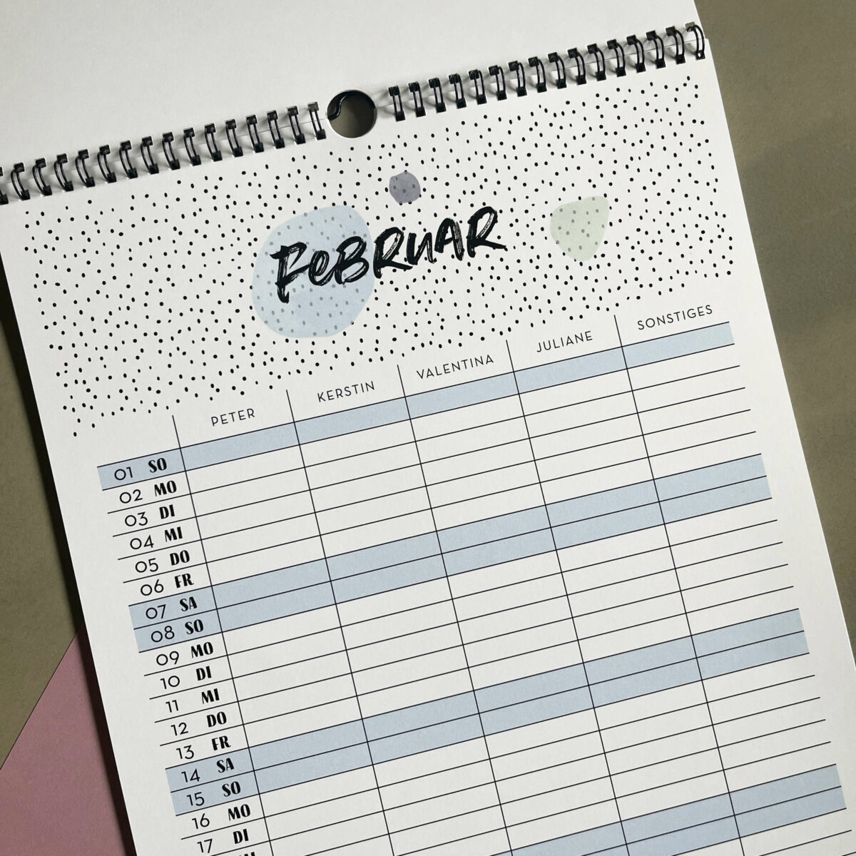 Familienkalender 2026 personalisiert , Wandkalender A4/A3 mit Namen, 1-6 Spalten »Puenktchen«