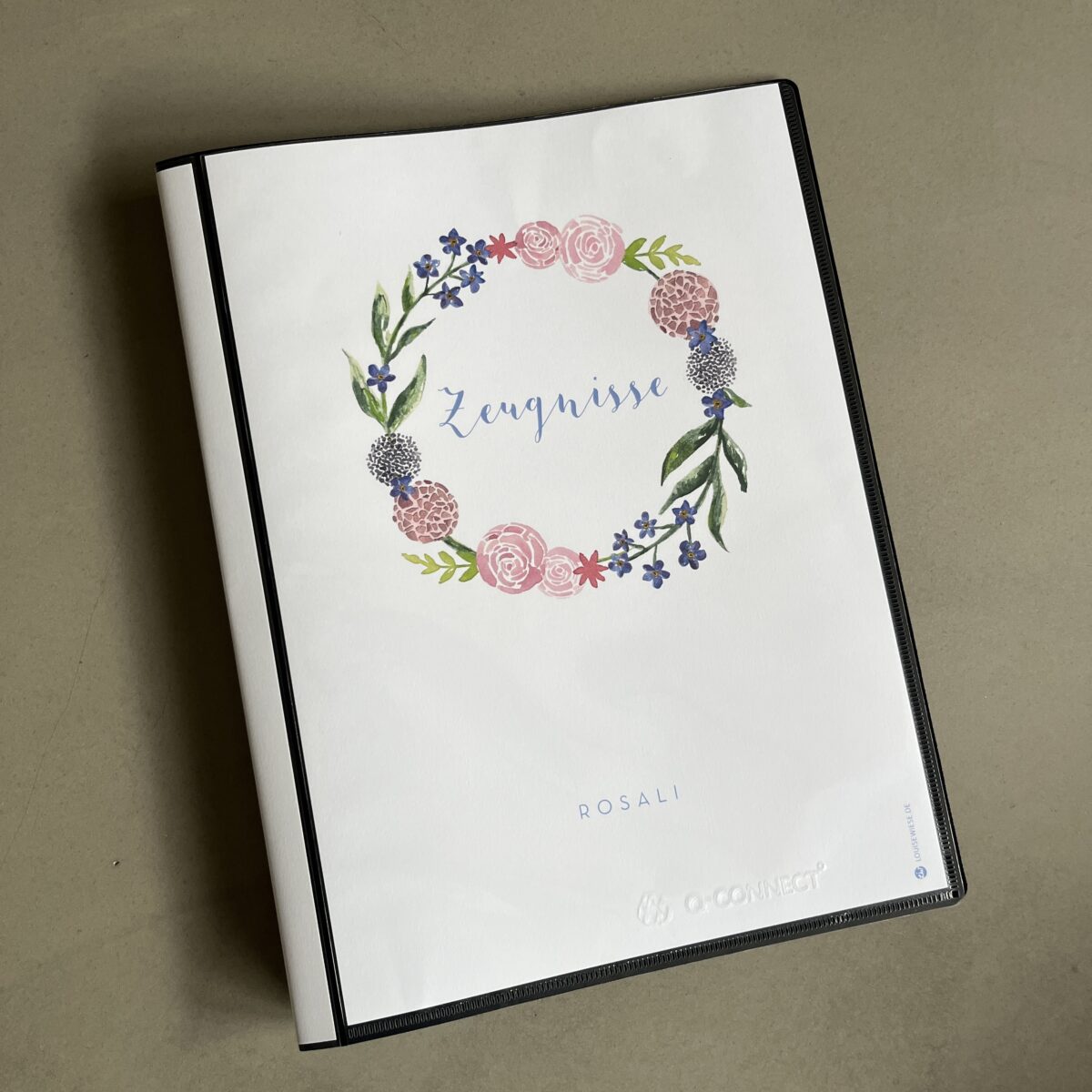 Zeugnismappe – personalisiert, Sichtbuch DIN A 4 »Blumenkranz«